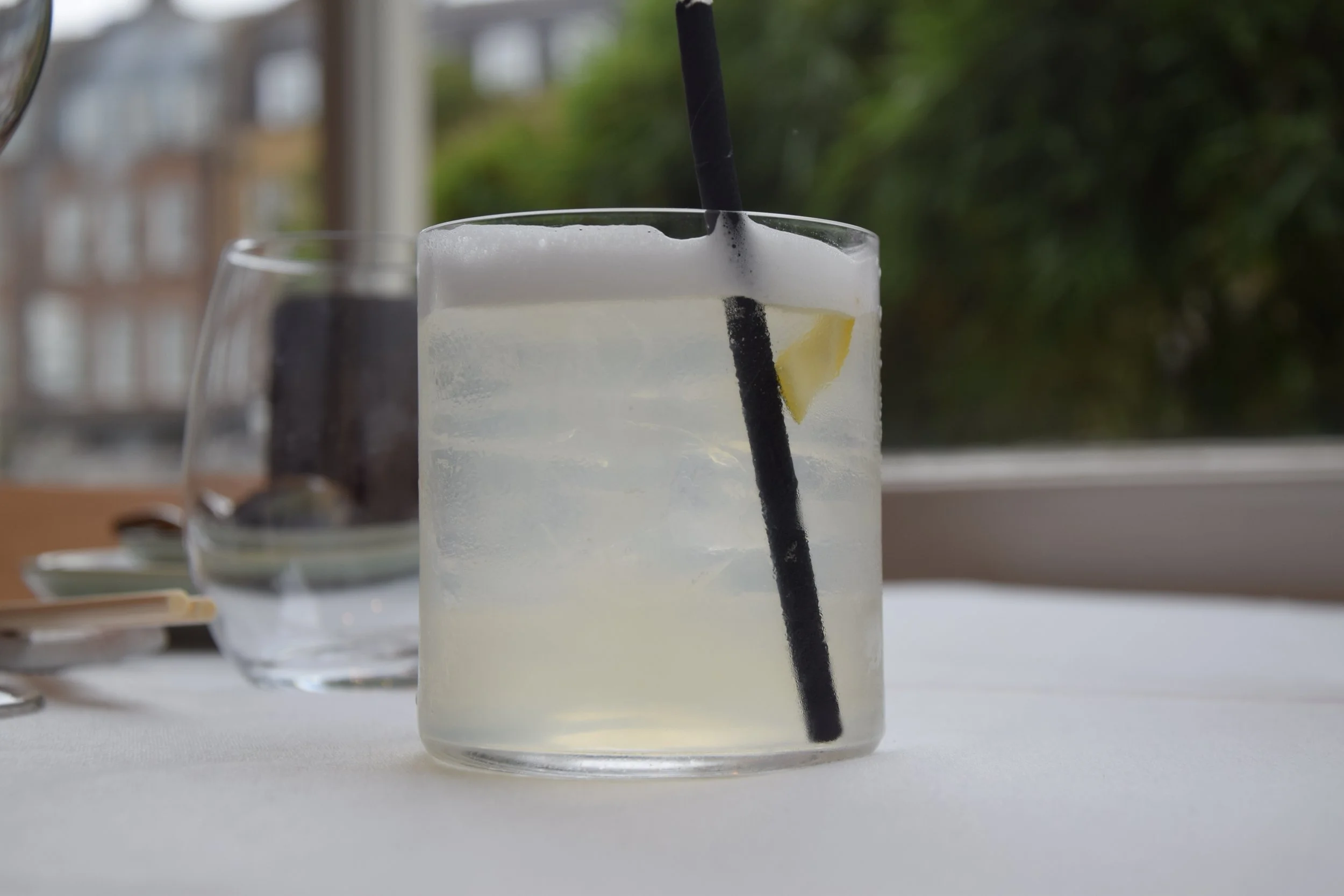 Hennessy VSOP, ginger eau de vie, clarified lemon, Chateau de Saran Honey cordial, ginger bitters